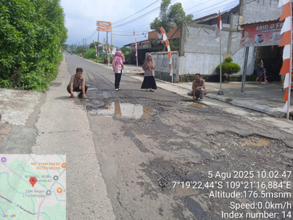 Terima kasih atas laporan dan perhatian masyarakat terkait kondisi ruas jalan Mrebet-Pagerandong yang rusak. Tim UPTD PJ2I bersama perwakilan Pemerintah Desa Selaganggeng dan perwakilan Kecamatan Mrebet sudah melakukan pengecekan di lokasi, dan benar terdapat beberapa titik jalan yang berlubang serta berpotensi mengganggu kenyamanan pengguna jalan. Ruas jalan tersebut masuk ruas jalan Kabupten, Jalan Selaganggeng–Pengalusan. Saat ini kondisi tersebut sudah kami masukkan dalam rencana tindak lanjut, dan insyaAllah segera dilaksanakan perbaikan. InsyaAllah masuk kegiatan anggaran APBD Perubahan Kabupaten Purbalingga Tahun 2025. Mohon doa dan dukungan agar proses perbaikan bisa berjalan lancar.