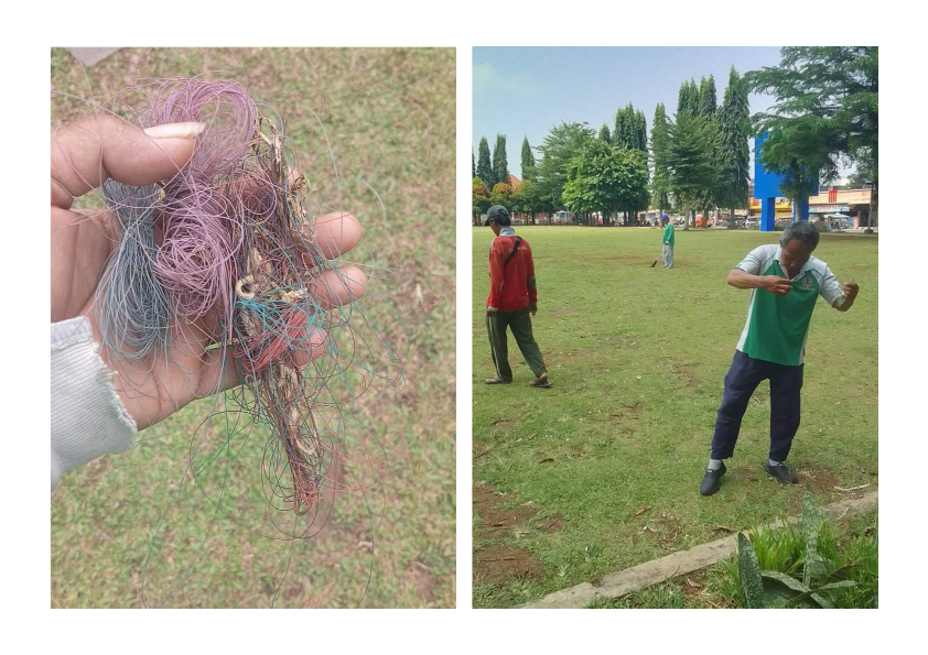 Assalamu’alaikum Mas Bup, izin melapor. Sabtu lalu saya sempat main ke Alun-Alun bersama anak untuk melatih anak jalan. Mohon maaf, waktu itu saya lupa mendokumentasikan kegiatan tersebut. Kemarin saya juga sempat melihat di area Alun-Alun, terutama di bagian pojok depan Lapas, cukup banyak senar layangan yang berserakan. Kalau dibiarkan, sepertinya bisa berbahaya, apalagi banyak anak-anak yang bermain dan berolahraga di sana. Saya sempat berusaha membersihkan sedikit, tapi ternyata senarnya cukup panjang dan sulit ditarik semua. Untuk sisi lain Alun-Alun saya kurang tahu kondisinya, tapi di area tersebut cukup banyak dan perlu perhatian. Terima kasih, Mas Bup. 🙏 |