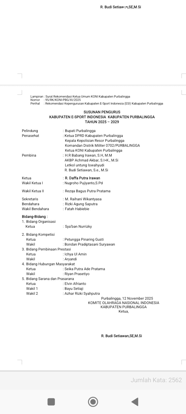 di Kabupaten Purbalingga pada tanggal 12 November 2025 telah terbentuk pengurus ESI yang baru, yang mudah2an bisa membawa ESI ke arah yang lebih baik, terkait dengan permasalahan yang Saudara sampaikan, kami sudah pernah melakukan koordinasi dengan pengurus ESI periode sebelumnya. selanjutnya Saudara dapat berkoordinasi dengan pengurus ESI yang baru
