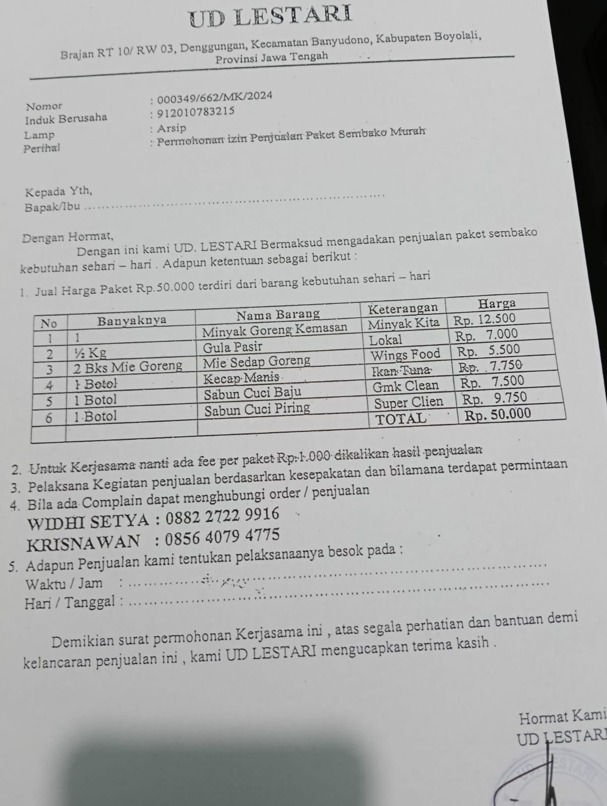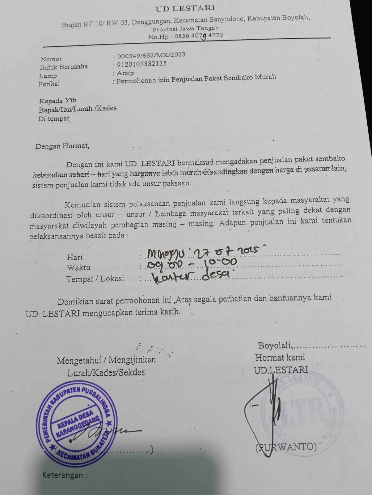Berdasarkan hasil koordinasi dengan Pemerintah Desa, Pemerintah Kecamatan, dan Dinas terkait (DKPP), program tebus sembako murah tersebut bukan dilaksanakan oleh Pemerintah Desa maupun DKPP. Yang melaksanakan adalah dari pihak swasta (UD Lestari Boyolali).